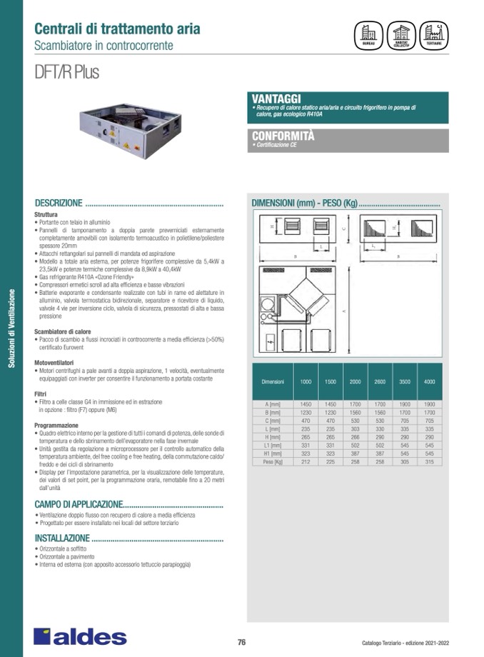 • Recupero di calore statico aria/aria e circuito frigorifero in pompa di