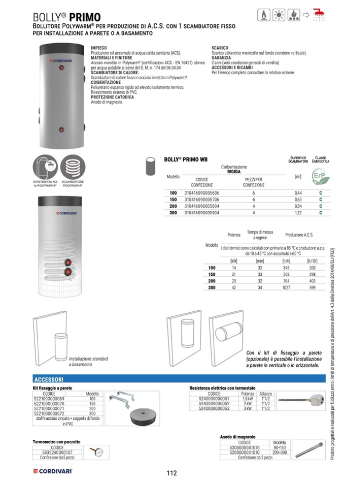 Produzione ed accumulo di acqua calda sanitaria (ACS).