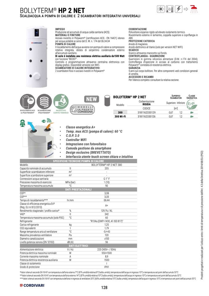 *Valori ottenuti secondo EN 16147 con temperatura dell’aria esterna 7°C (87% umidità relativa/6°C bulbo umido), temperatura dell’acqua in ingresso 10°C e temperatura set point dell'accumulo 55°C