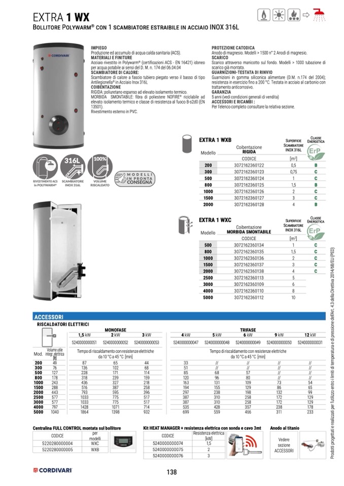 Produzione ed accumulo di acqua calda sanitaria (ACS).