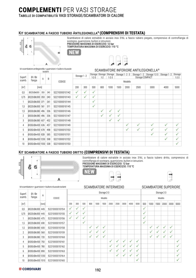Scambiatore di calore estraibile in acciaio inox 316L a fascio tubiero dritto, comprensivo di