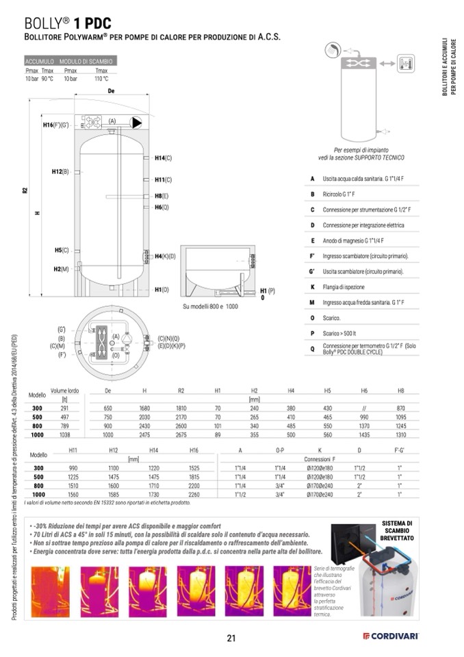• Energia concentrata dove serve: tutta l’energia prodotta dalla p.d.c. si concentra nella parte alta del bollitore.