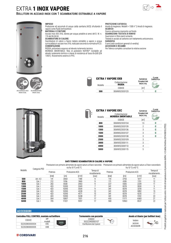 DATI TERMICI SCAMBIATORI DI CALORE A VAPORE