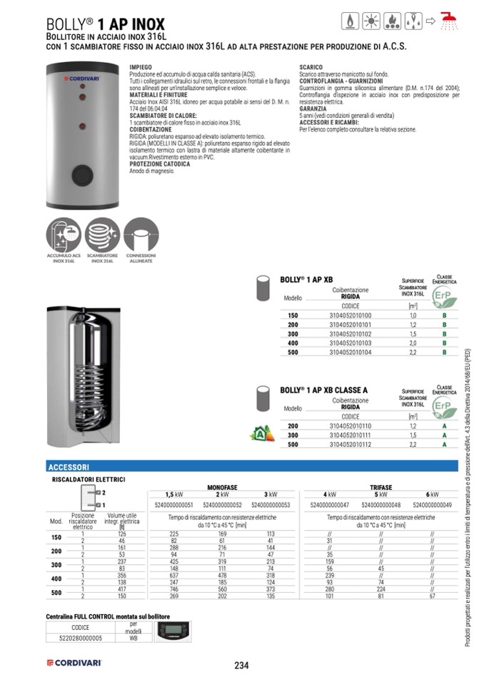 Produzione ed accumulo di acqua calda sanitaria (ACS).