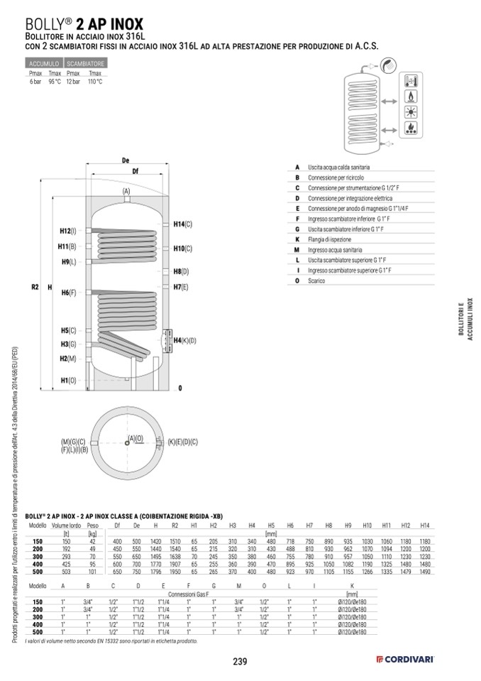 2 AP INOX - 2 AP INOX CLASSE A (COIBENTAZIONE RIGIDA -XB)