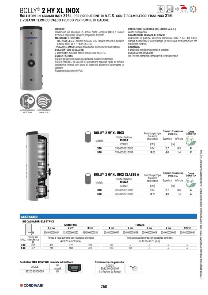 - BOLLITORE A.C.S.: Acciaio Inox AISI 316L idoneo per acqua potabile