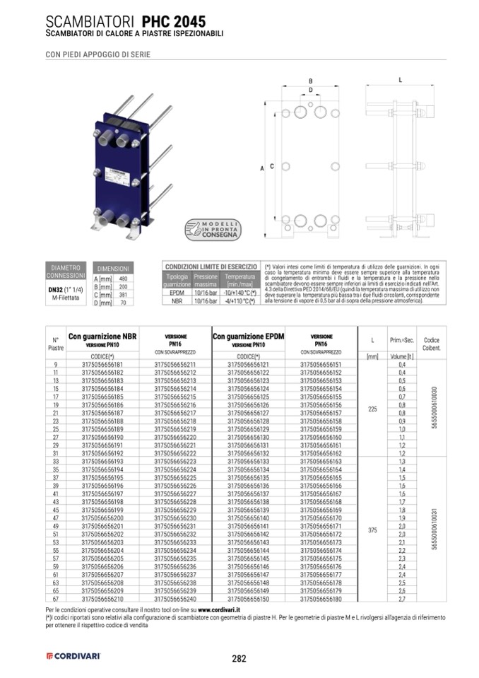 (*)I codici riportati sono relativi alla configurazione di scambiatore con geometria di piastre H. Per le geometrie di piastre M e L rivolgersi all’agenzia di riferimento