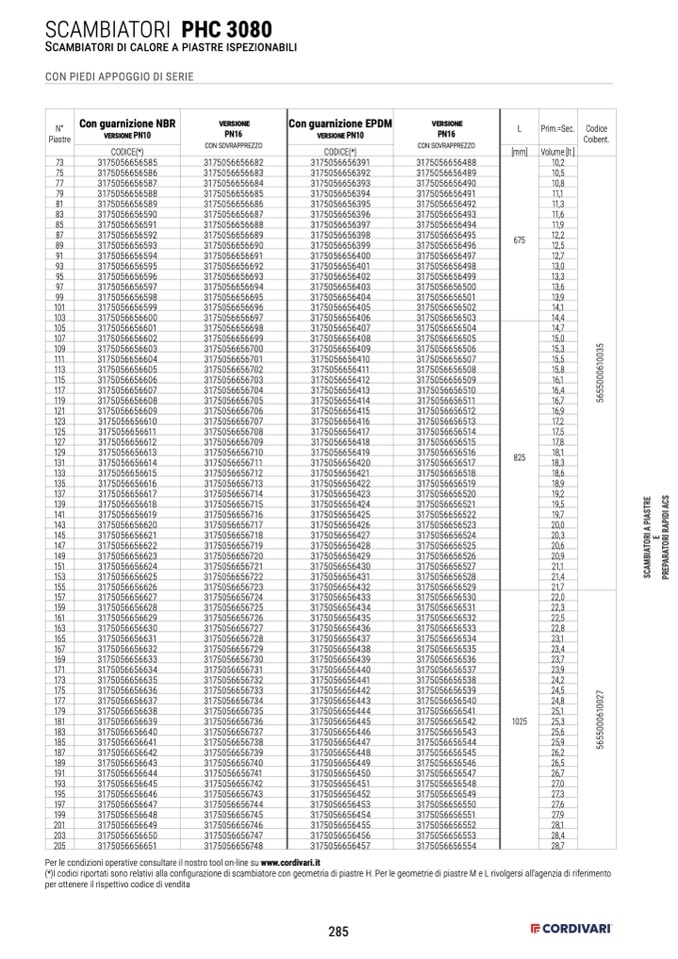 (*)I codici riportati sono relativi alla configurazione di scambiatore con geometria di piastre H. Per le geometrie di piastre M e L rivolgersi all’agenzia di riferimento
