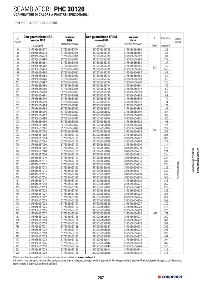 (*)I codici riportati sono relativi alla configurazione di scambiatore con geometria di piastre H. Per le geometrie di piastre M e L rivolgersi all’agenzia di riferimento