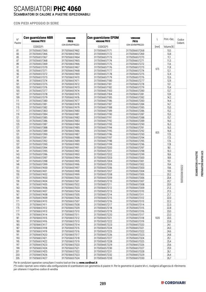 (*)I codici riportati sono relativi alla configurazione di scambiatore con geometria di piastre H. Per le geometrie di piastre M e L rivolgersi all’agenzia di riferimento