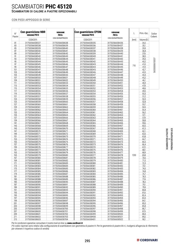 (*)I codici riportati sono relativi alla configurazione di scambiatore con geometria di piastre H. Per le geometrie di piastre M e L rivolgersi all’agenzia di riferimento