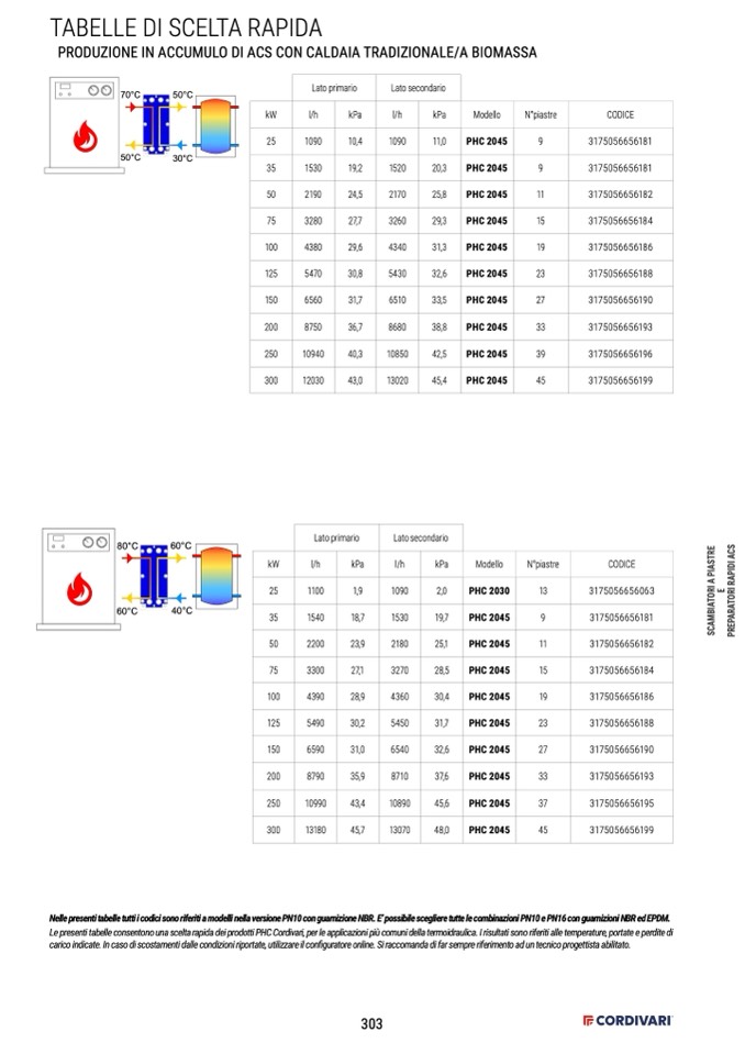 Le presenti tabelle consentono una scelta rapida dei prodotti PHC Cordivari, per le applicazioni più comuni della termoidraulica. I risultati sono riferiti alle temperature, portate e perdite di