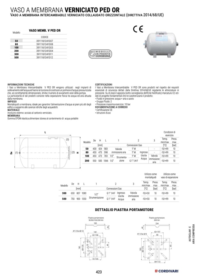 I Vasi a Membrana Intercambiabile V PED OR sono prodotti nel rispetto dei requisiti