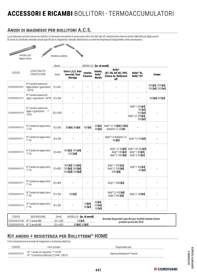 Di serie la Cordivari prevede anodi sacrificali in magnesio; l’anodo elettronico a corrente impressa è disponibile come accessorio.