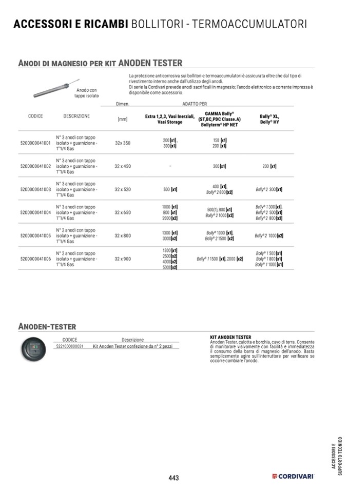 Di serie la Cordivari prevede anodi sacrificali in magnesio; l’anodo elettronico a corrente impressa è