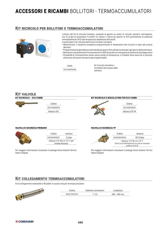 L’utilizzo del kit di ricircolo Cordivari, consente di gestire un anello di ricircolo sanitario sull’impianto,