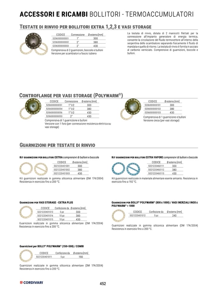 Kit guarnizioni realizzate in materiale alimentare esente amianto. Resistenza in