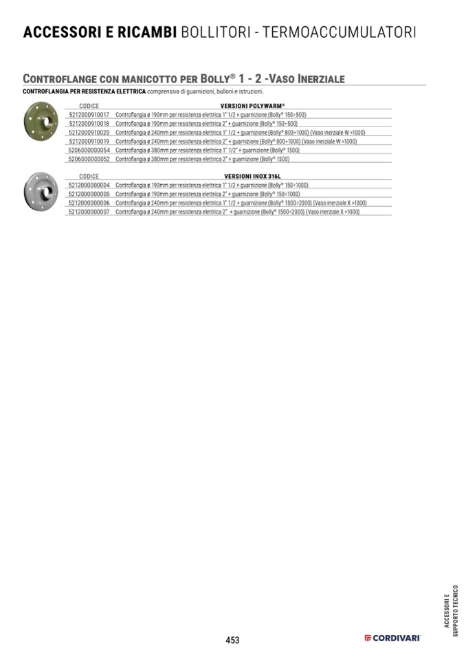CONTROFLANGIA PER RESISTENZA ELETTRICA comprensiva di guarnizioni, bulloni e istruzioni.