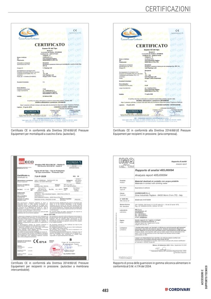 Certificato CE in conformità alla Direttiva 2014/68/UE Pressure