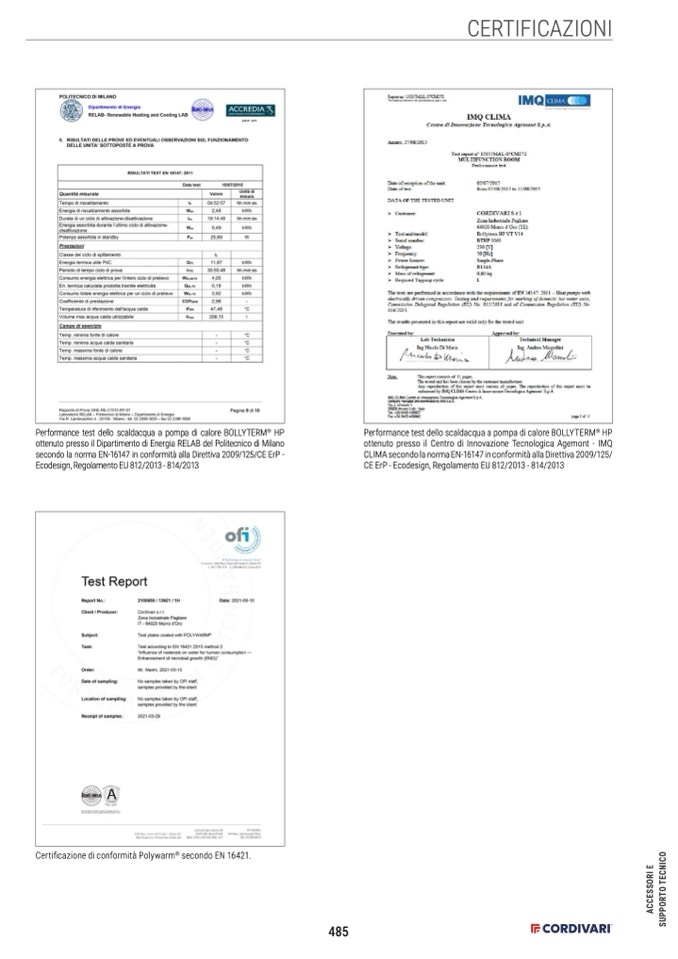 Certificazione di conformità Polywarm