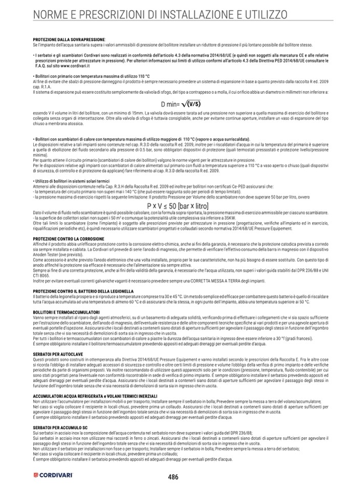 • I serbatoi e gli scambiatori Cordivari sono realizzati in conformità dell’articolo 4.3 della normativa 2014/68/UE (e quindi non soggetti alla marcatura CE e alle relative