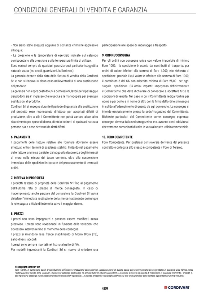 I prodotti restano di proprietà della Cordivari Srl fino al pagamento