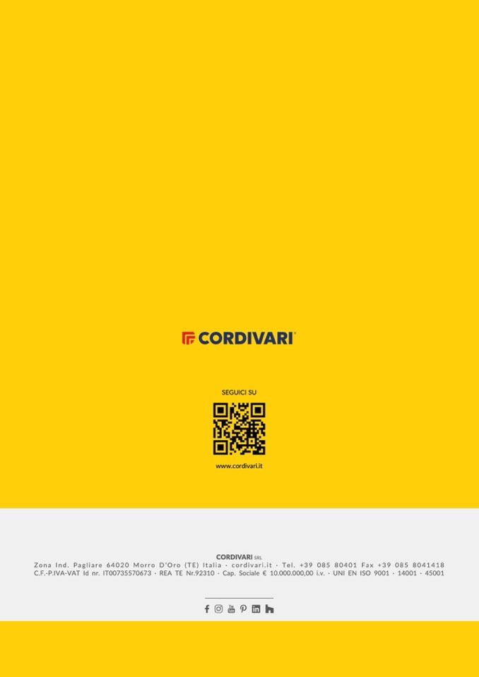 Zona Ind. Pagliare 64020 Morro D’Oro (TE) Italia · cordivari.it · Tel. +39 085 80401 Fax +39 085 8041418