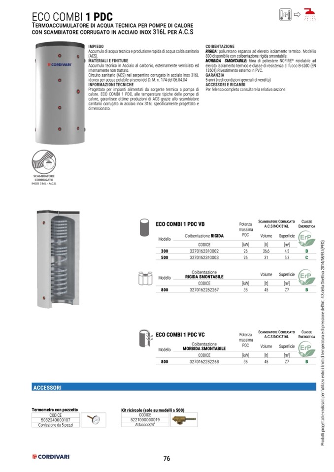 calore. ECO COMBI 1 PDC, alle temperature tipiche delle pompe di