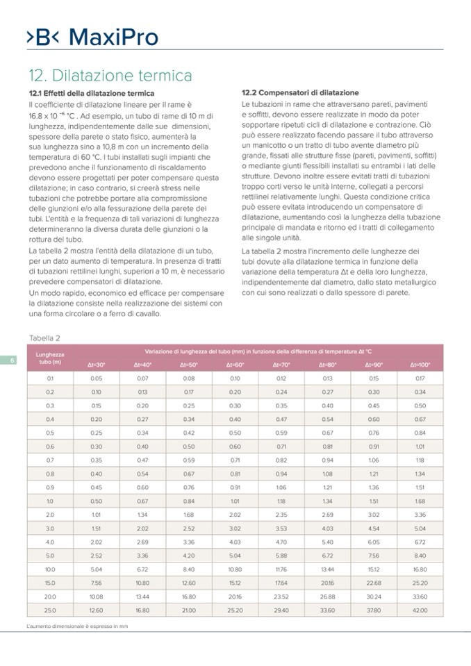 La tabella 2 mostra l'entità della dilatazione di un tubo
