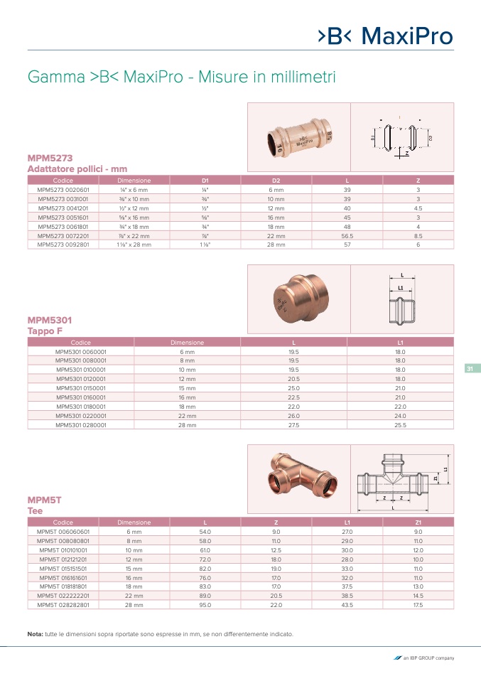 Nota: tutte le dimensioni sopra riportate sono espresse in mm, se non differentemente indicato.