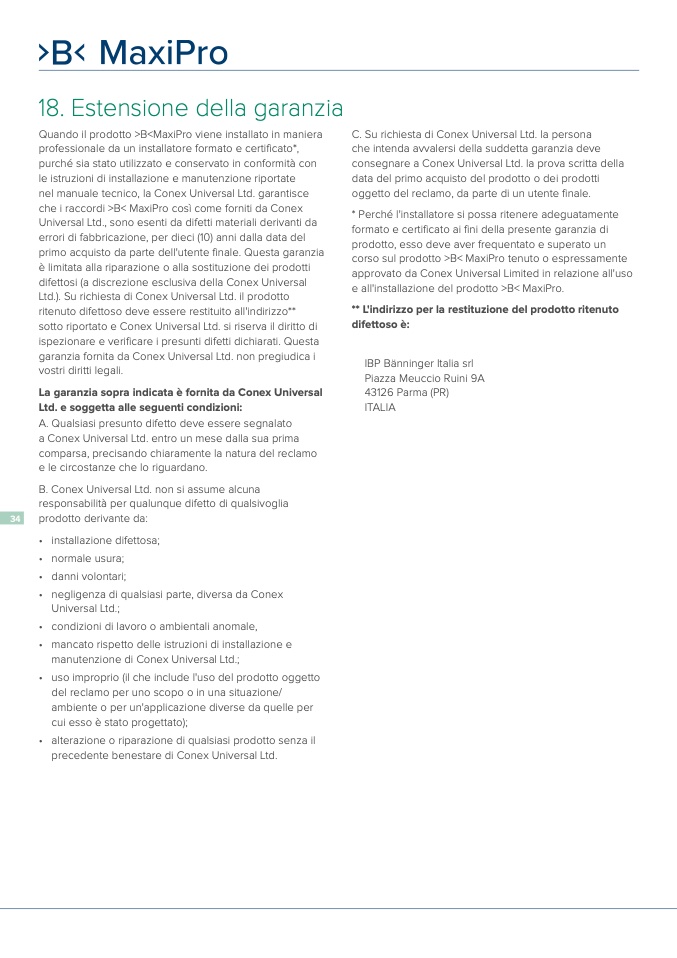 La garanzia sopra indicata è fornita da Conex Universal