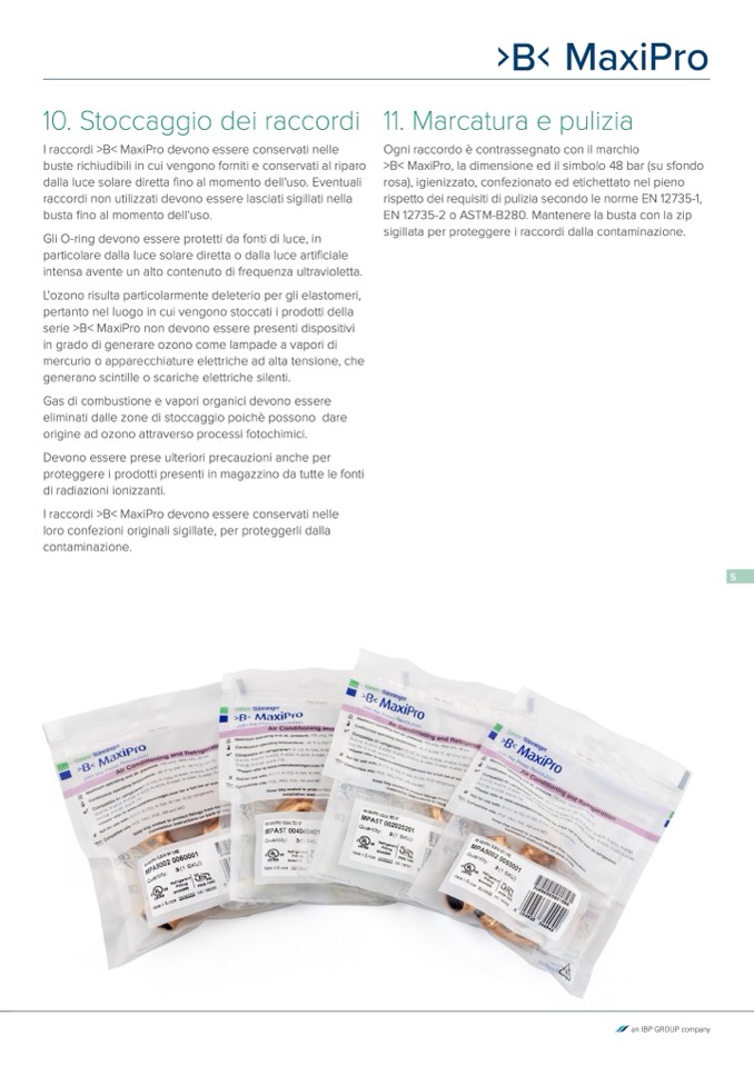I raccordi >B< MaxiPro devono essere conservati nell