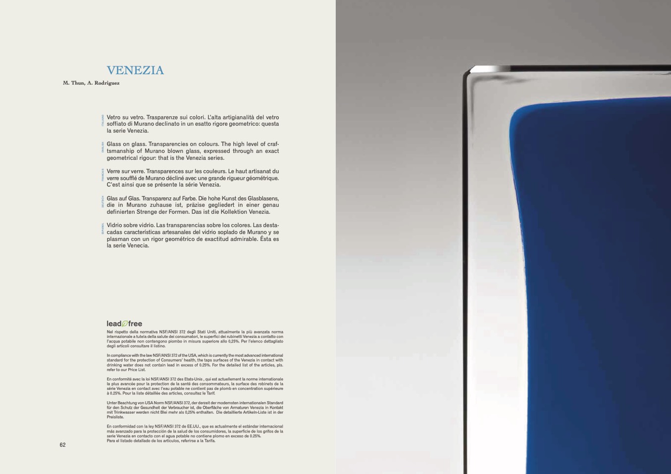 standard for the protection of Consumers’ health, the taps surfaces of the Venezia in contact with