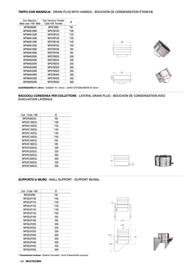 RACCOGLI CONDENSA PER COLLETTORE - LATERAL DRAIN PLUG - BOUCHON DE CONDENSATION AVEC