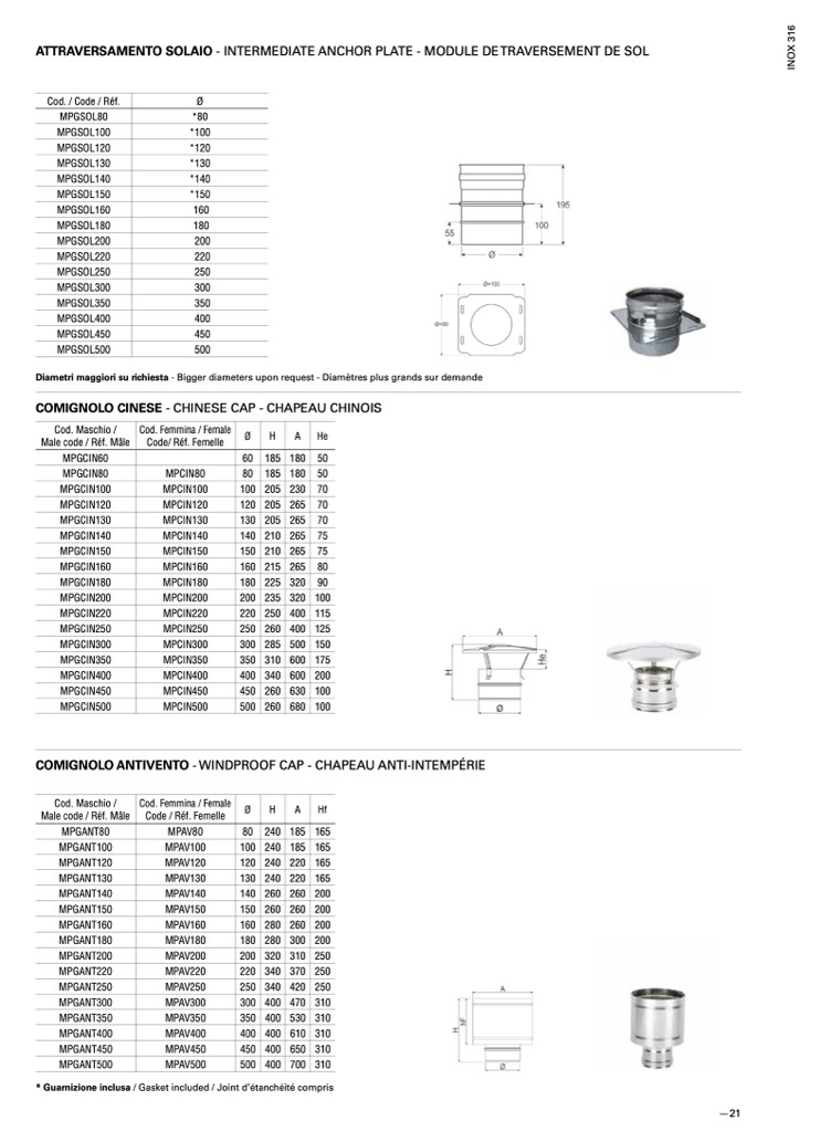 Diametri maggiori su richiesta - Bigger diameters upon request - Diamètres plus grands sur demande