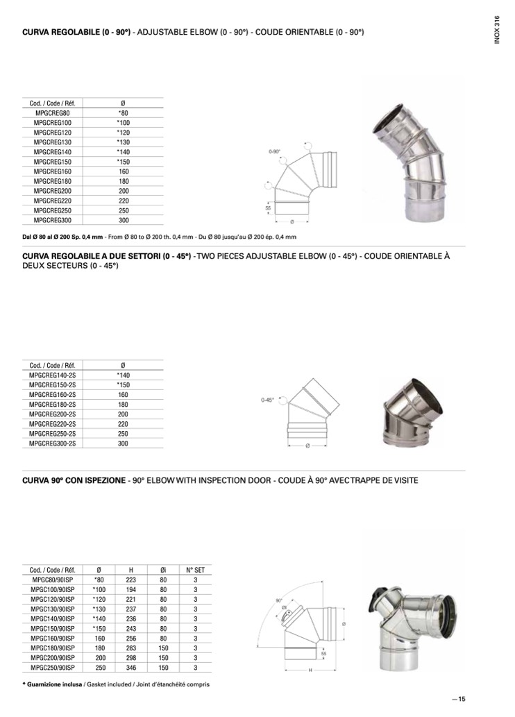 CURVA REGOLABILE (0 - 90°) - ADJUSTABLE ELBOW (0 - 90°) - COUDE ORIENTABLE (0 - 90°)