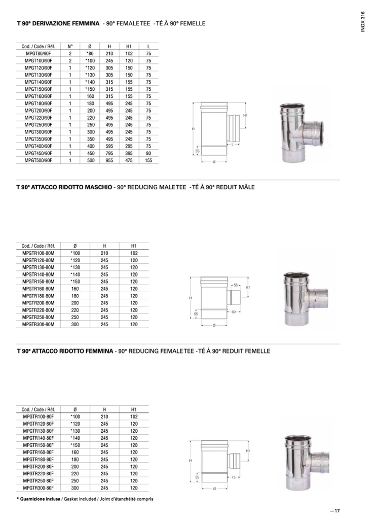 T 90° ATTACCO RIDOTTO FEMMINA - 90° REDUCING FEMALE TEE - TÉ À 90° REDUIT FEMELLE