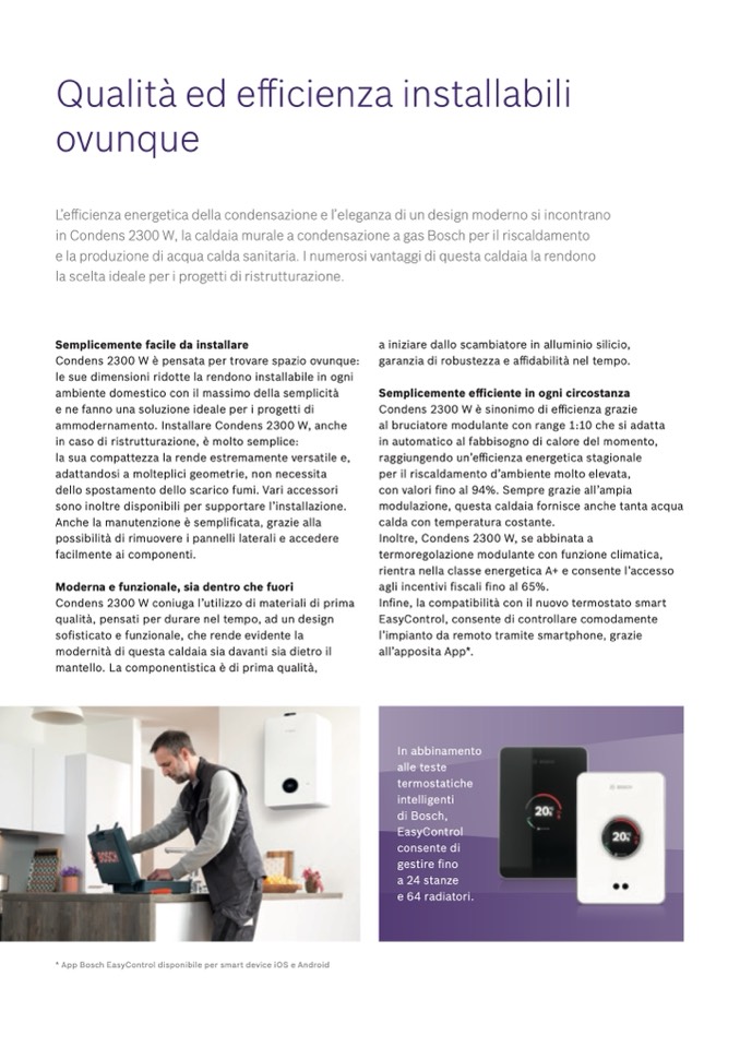 in Condens 2300 W, la caldaia murale a condensazione a gas Bosch per il riscaldamento