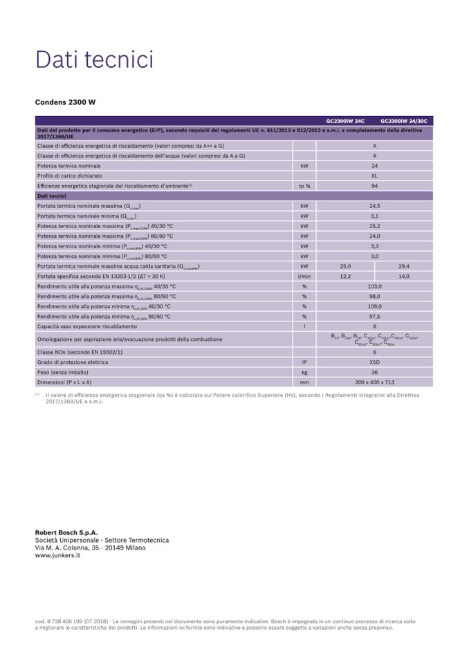 cod. 8 738 400 199 (07.2018) - Le immagini presenti nel documento sono puramente indicative. Bosch