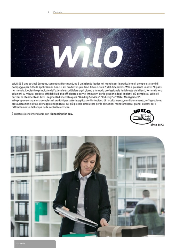 WILO SE è una società Europea, con sede a Dortmund, ed è un‘azienda leader nel mondo per la produzione di pompe e sistemi di