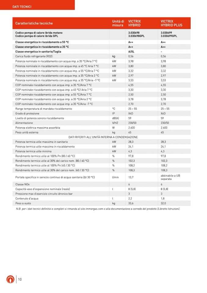 N.B. per i dati tecnici definitivi e completi si rimanda al sito immergas.com o alla documentazione a corredo del prodotto (Libretto Istruzioni).