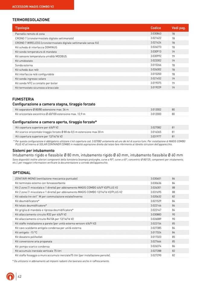 Sono disponibili inoltre ulteriori componenti della fumisteria (esempio prolunghe, curve a 90°, curve a 45°, concentrici Ø 80/125, componenti per intubamento,