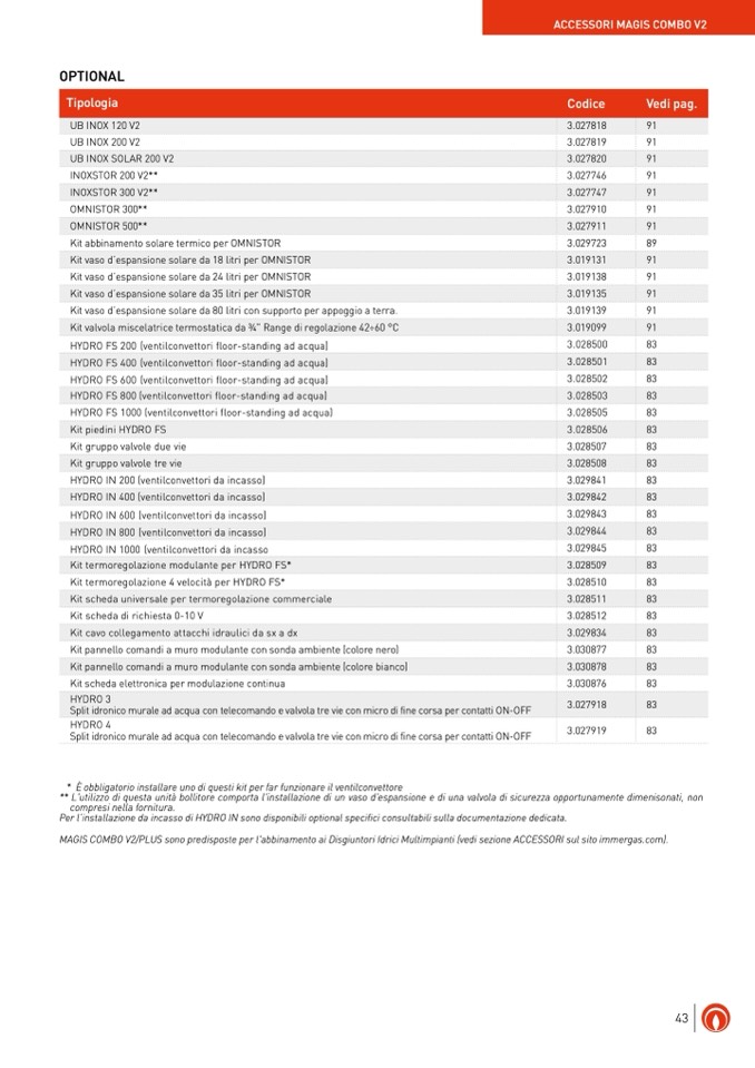 MAGIS COMBO V2/PLUS sono predisposte per l'abbinamento ai Disgiuntori Idrici Multimpianti (vedi sezione ACCESSORI sul sito immergas.com).