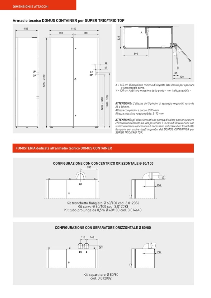 flangiato per uscire dagli ingombri del DOMUS CONTAINER per