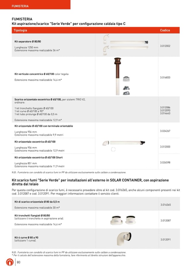 N.B.: Fumisteria con condotto di scarico fumi in PP da utilizzare esclusivamente sulle caldaie a condensazione.