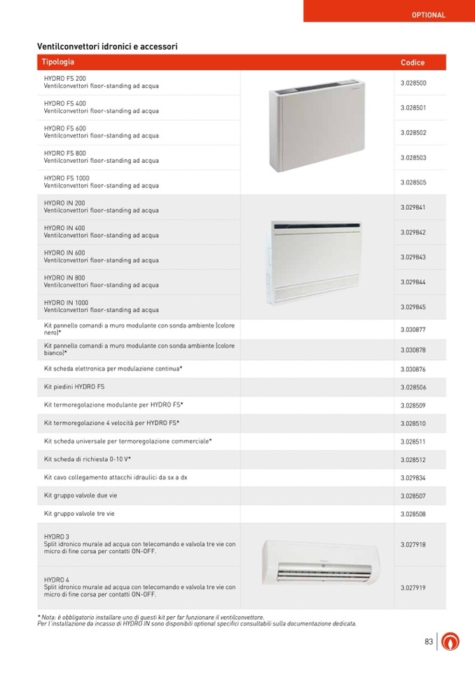 * Nota: è obbligatorio installare uno di questi kit per far funzionare il ventilconvettore.