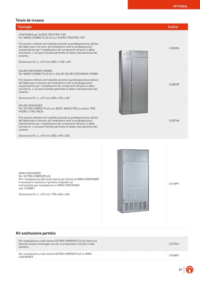 Per installazione unità interna VICTRIX HYBRID/PLUS in OMNI