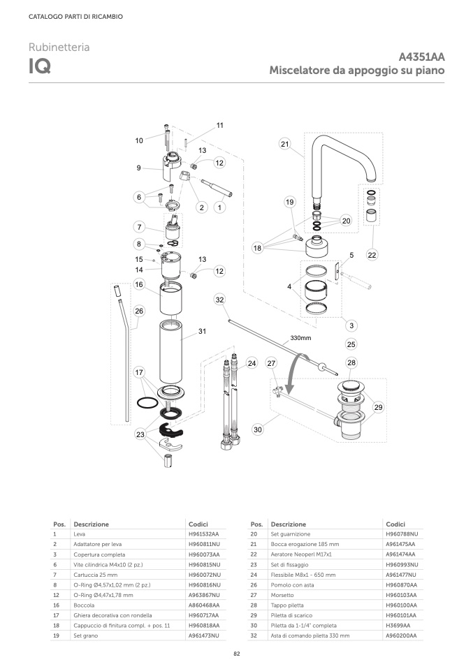 Asta di comando piletta 330 mm