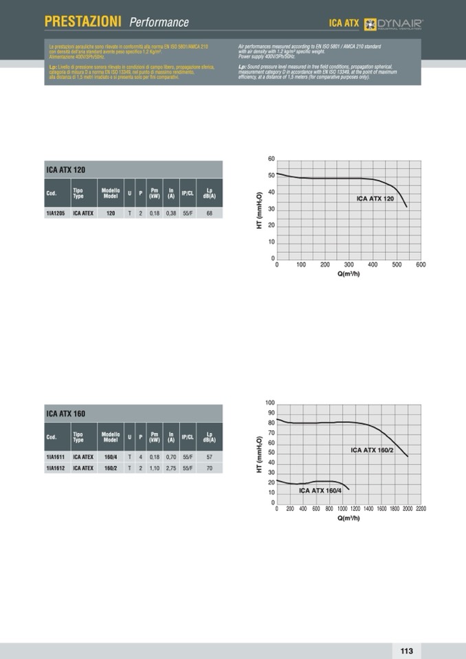 Le prestazioni aerauliche sono rilevate in conformità alla norma EN ISO 5801/AMCA 210