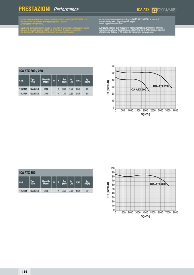 Le prestazioni aerauliche sono rilevate in conformità alla norma EN ISO 5801/AMCA 210